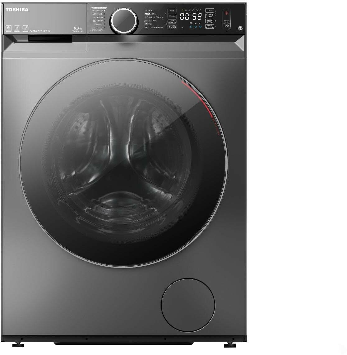Inverter motor, protection: from children, steam supply, programs: hypoallergenic wash, outerwear wash, steam wash, cotton wash, wool wash, additional functions: delayed start, design features