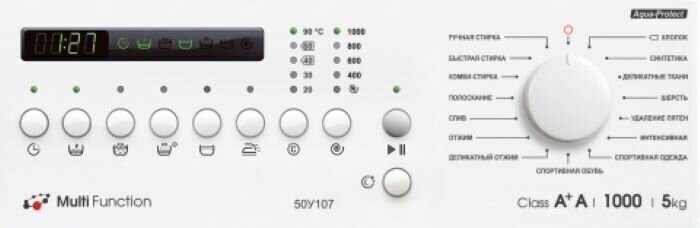 Spin speed selection, washing temperature selection, intelligent washing control, balance control, foam level control, delayed start, wash end signal