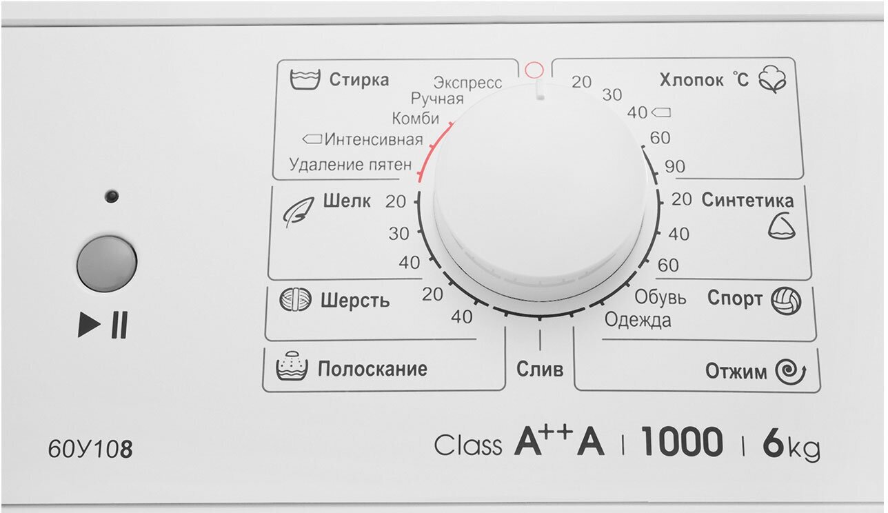 Load type: front load, maximum load of laundry: 6-6.9 kg, installation: freestanding, depth: 42 cm, width: 60 cm, height: 85 cm, maximum spin speed: 900-1100 rpm, energy efficiency class : A++, protection