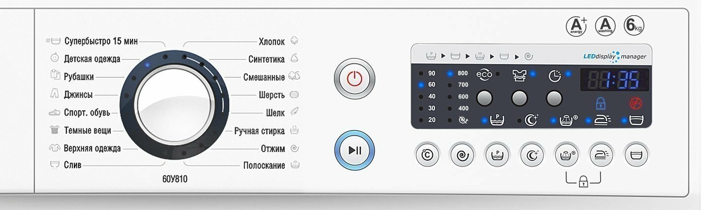 Spin speed selection, washing temperature selection, intelligent wash management, balance control, foam level control, delayed start