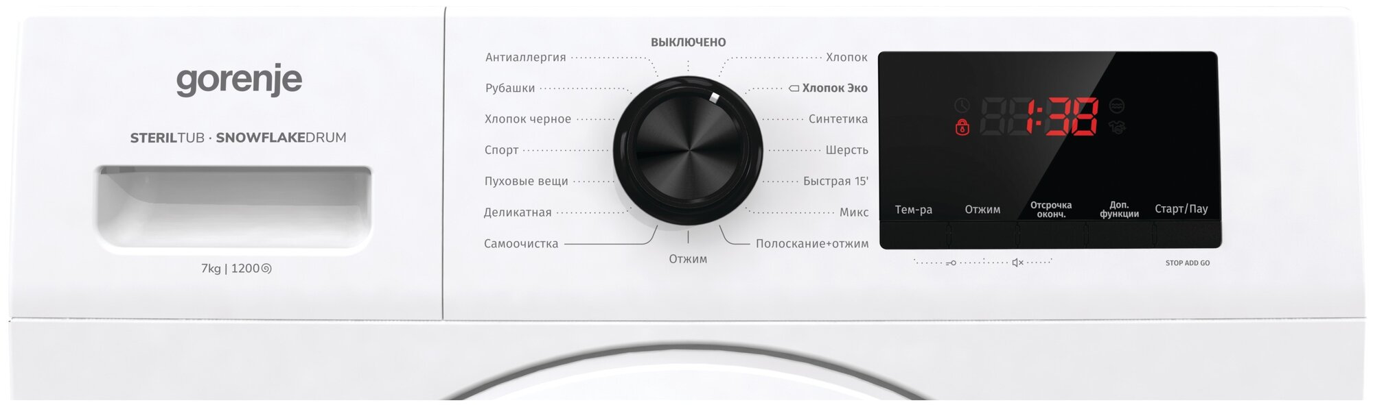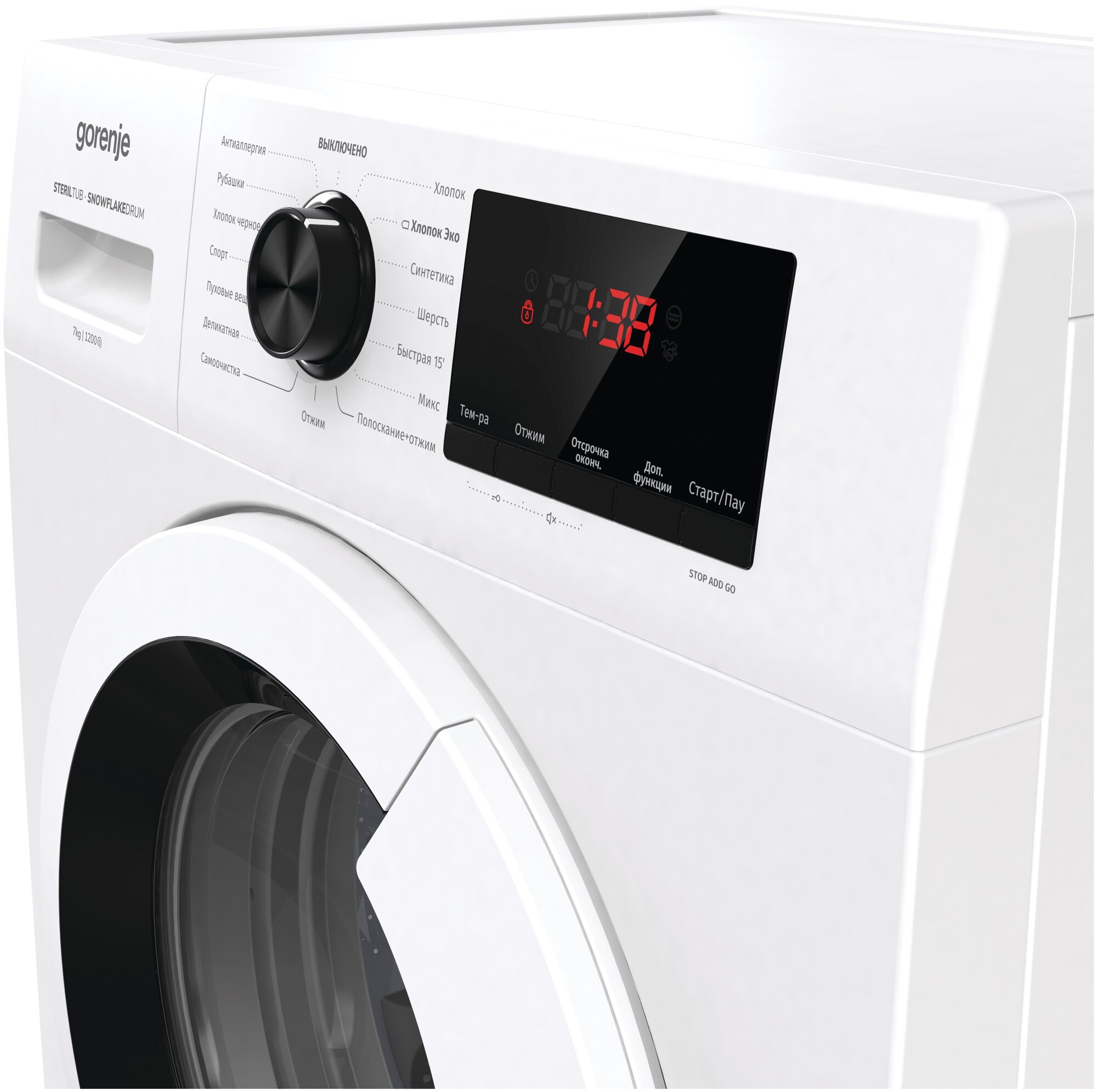 Spin speed selection, washing temperature selection, balance control, delayed start