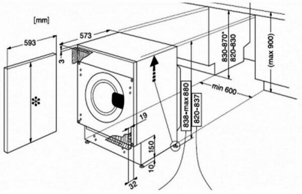 Loading type: front, maximum load of laundry: 7–7.9 kg, installation: built-in, depth: 54 cm, width: 60 cm, height: 82 cm, maximum spin speed: from 1200 rpm, energy efficiency class: A++ , defence from