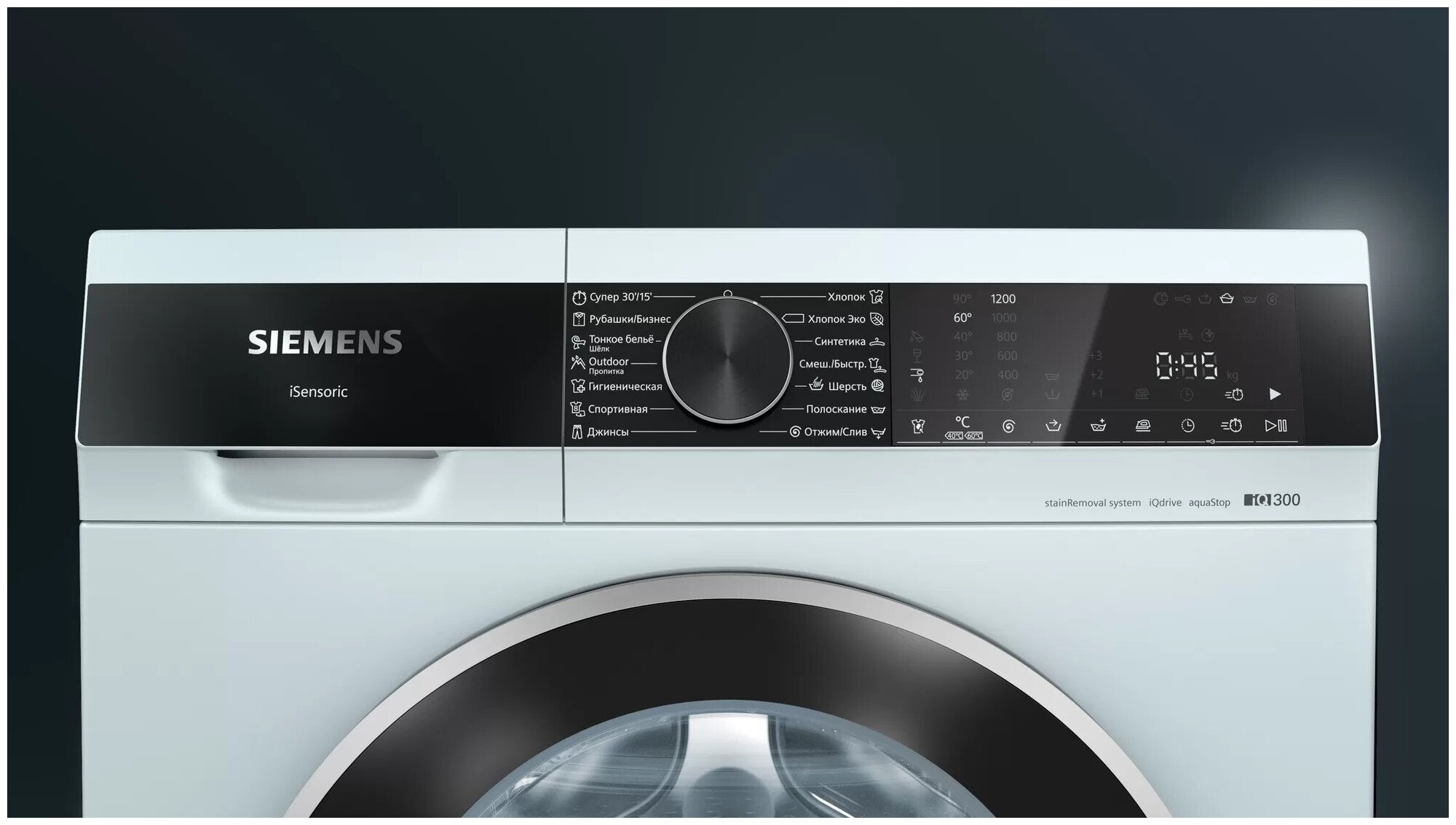 Spin speed selection, washing temperature selection, balance control, foam level control, delayed start, end of wash signal
