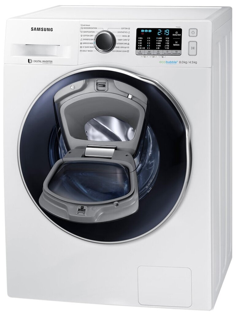 Antibacterial; AirWash technology, ceramic heater, Diamond drum, Eco drum cleaning