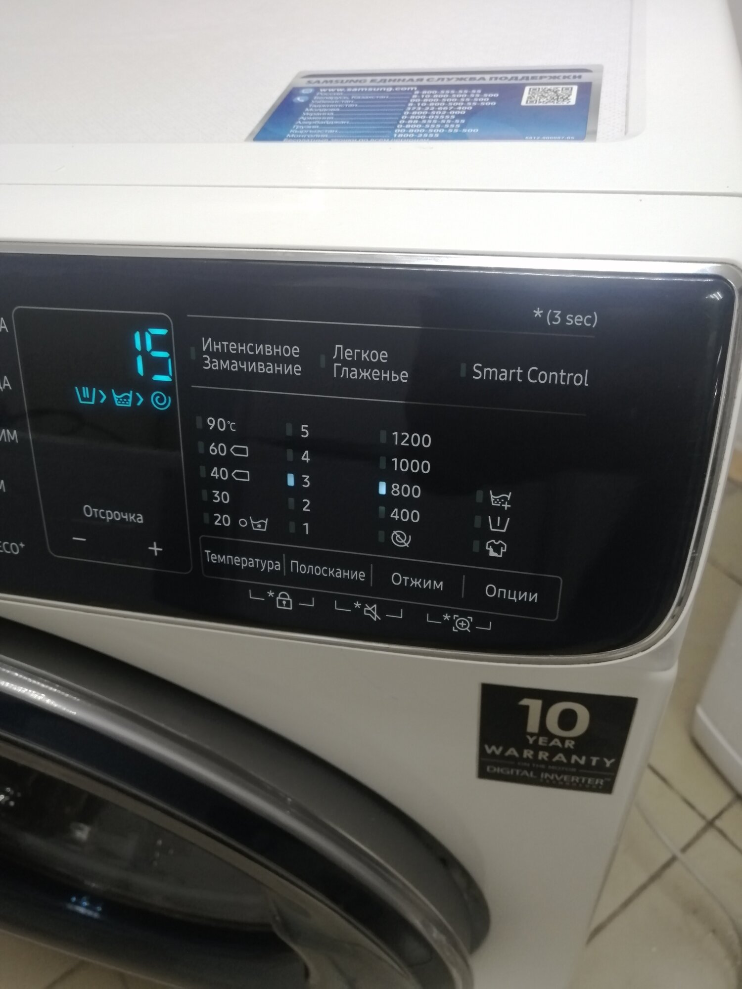 Spin speed selection, washing temperature selection, intelligent wash control, balance control, foam level control, delayed start, bubble wash