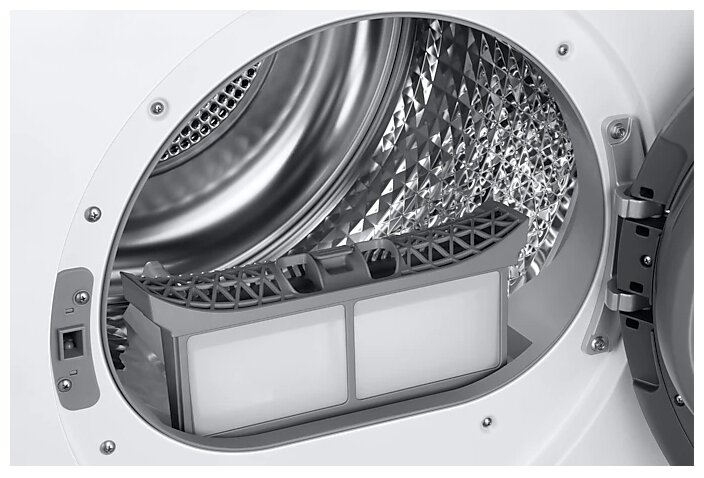 Dryer parameters: laundry load: 9kg, energy efficiency class: A+++, weight: 54 kg, drying type: heat pump, cycle time: 220 min, noise level: 62 dB