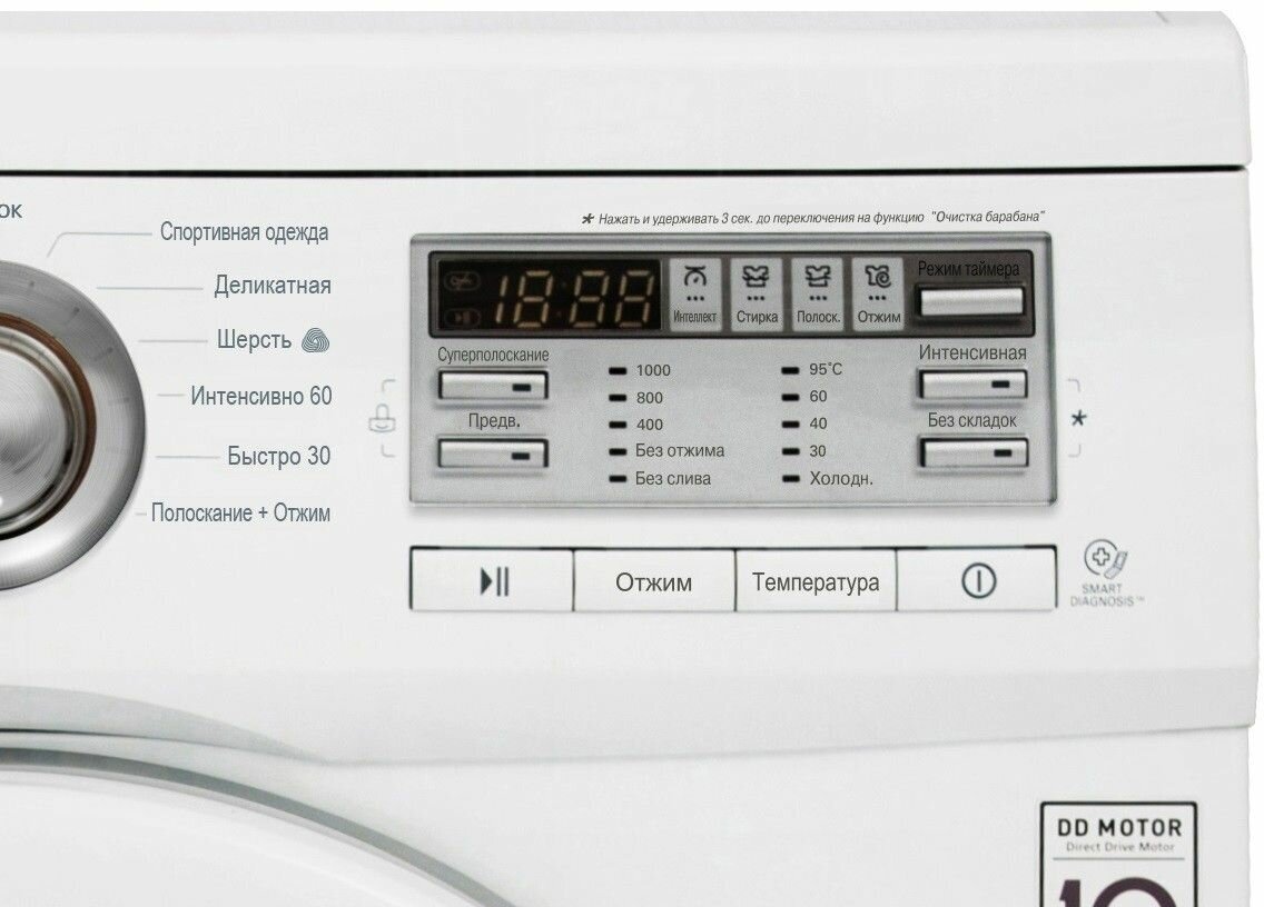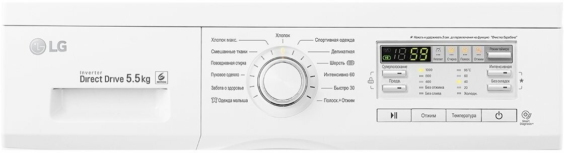 Spin speed selection, washing temperature selection, intelligent washing control, balance control, foam level control, delayed start, wash end signal