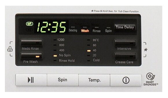 Spin speed selection, washing temperature selection, intelligent washing control, balance control, foam level control, delayed start, wash end signal