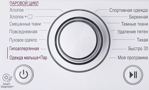 Modes: hypoallergenic, my program, add linen; door opening angle 150°; drum type - bubble; Tag On NFC function for smartphones