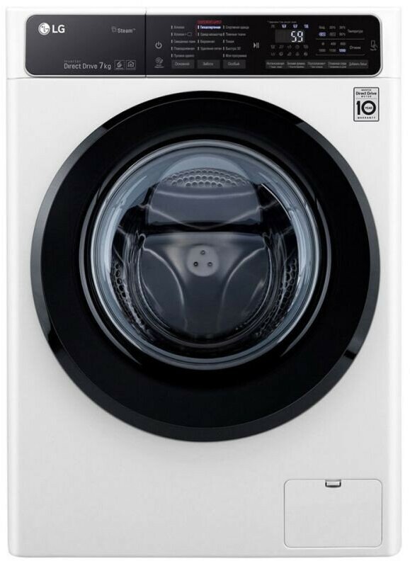 Power consumption 1.06 kW/h; steam function; WiFi; the ability to control through the application LG ThinQ; auto restart, duty cycle indicator, time to end of cycle indicator, door lock indicator, error indicator