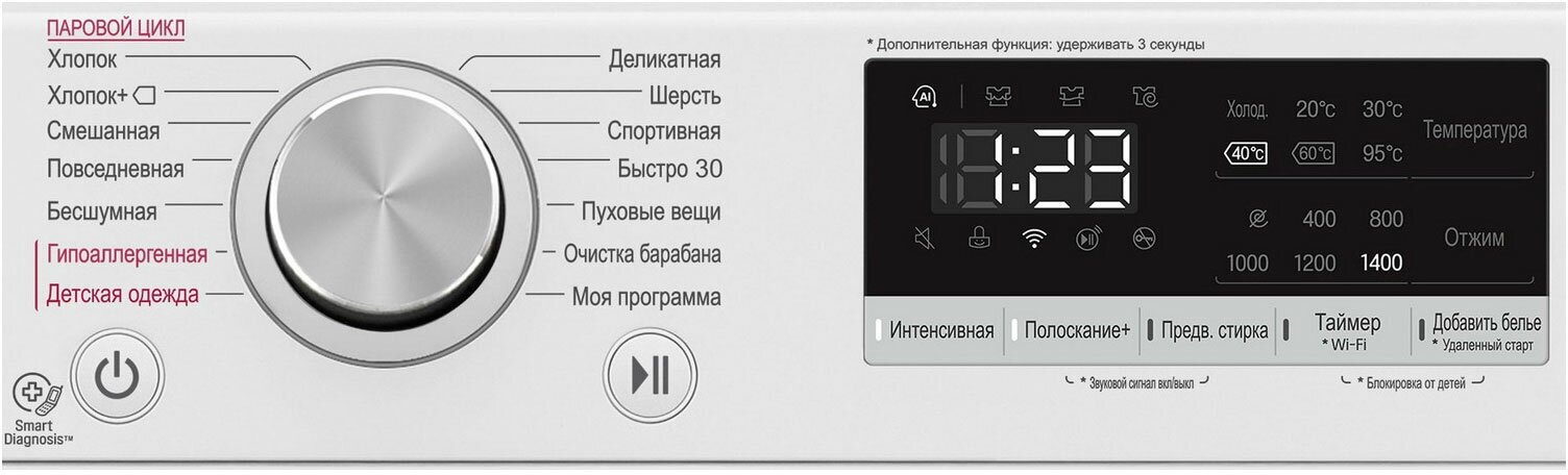 Power consumption 1.35 kWh; "My Program", drum cleaning; WiFi; controllable via LG ThinQ app