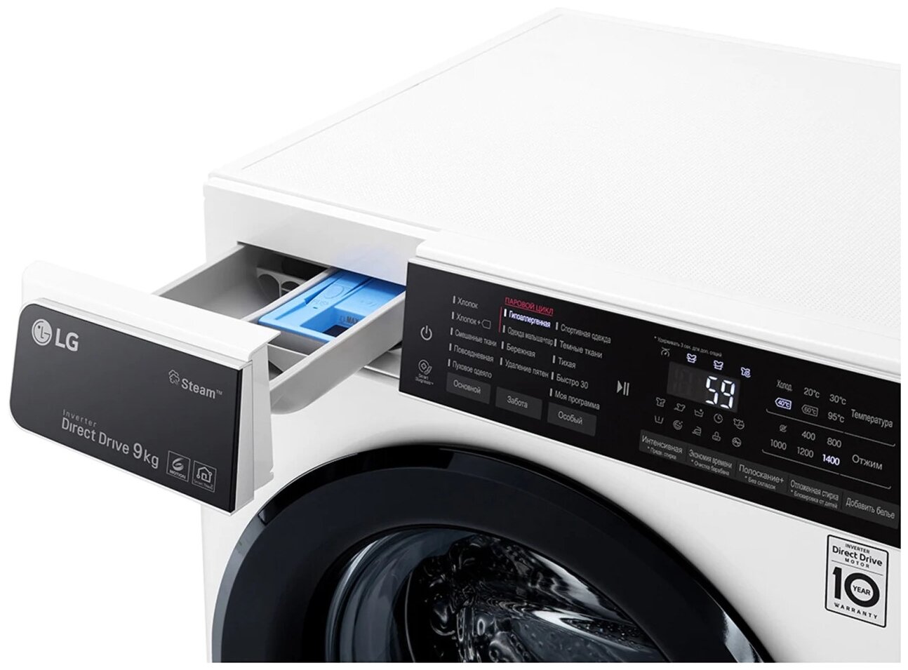 Automatic detergent dosage, spin speed selection, intelligent wash control, balance control, foam level control, delayed start, end of wash signal, beep
