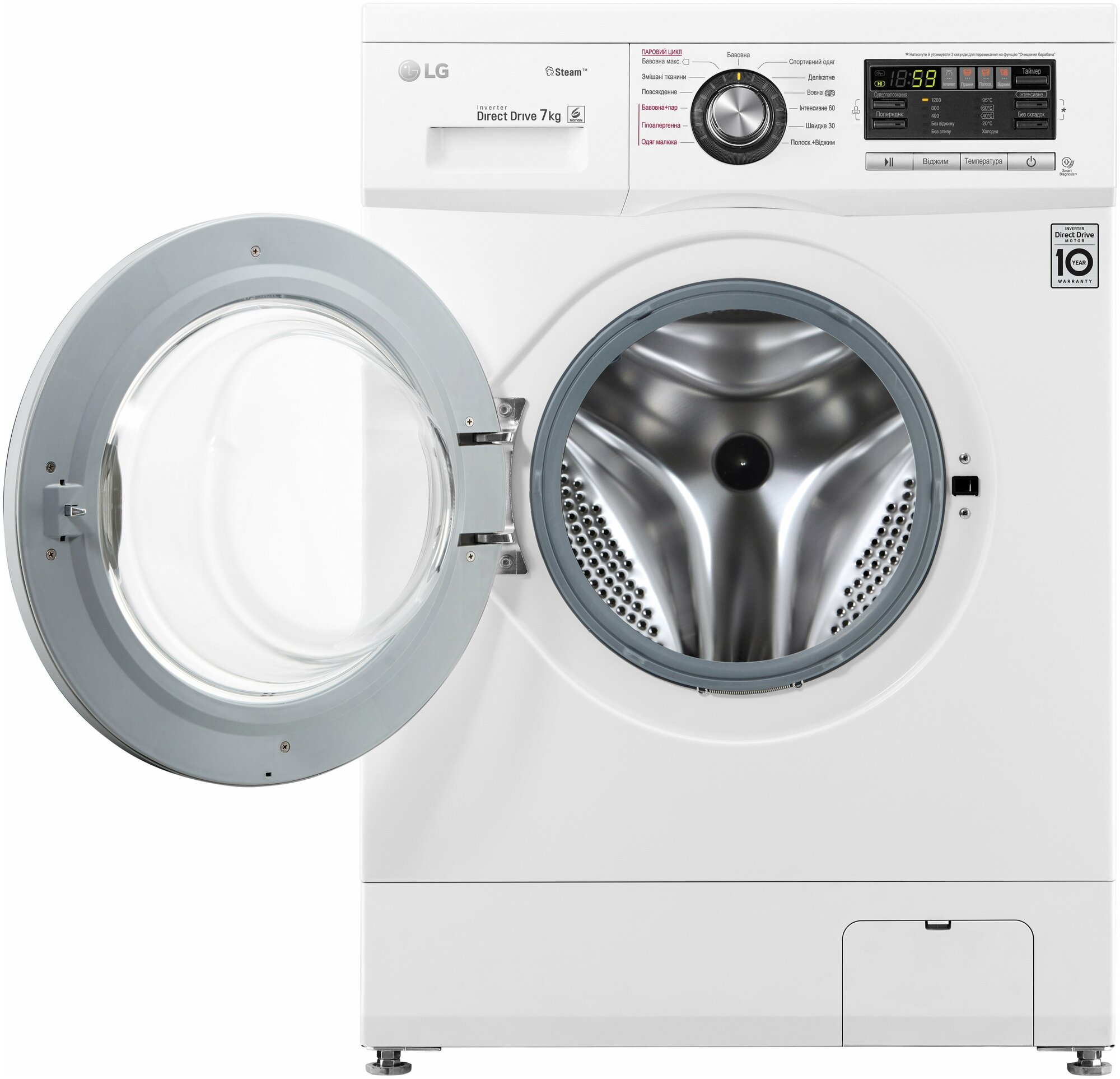 Spin speed selection, washing temperature selection, intelligent washing control, balance control, foam level control, delayed start, wash end signal