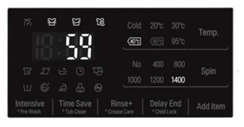 Spin speed selection, washing temperature selection, intelligent washing control, balance control, foam level control, wash end signal, wash end time setting