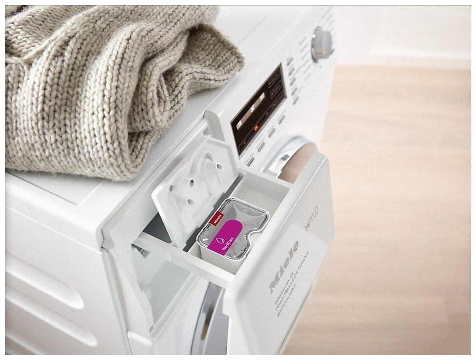 Water consumption for washing and drying: 90 l; honeycomb drum with LED illumination; depth with door open: 105.5 cm, mains cable length: 2 m