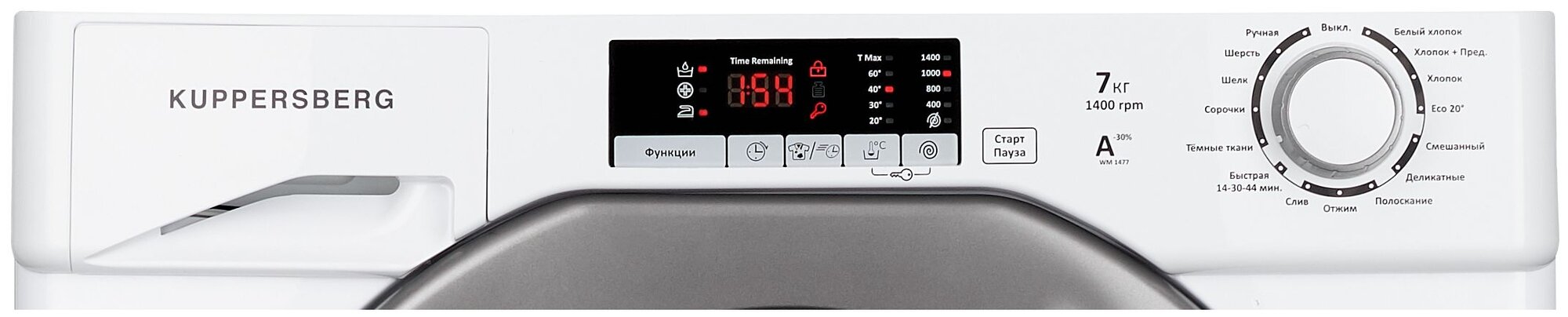 Rinsing and spinning; shirts; white cotton; quick wash 15/30/40 min; electronic self-diagnosis; eco 20C; drain without spin; hygiene +; niche dimensions for embedding HxWxD 825×600×560 cm