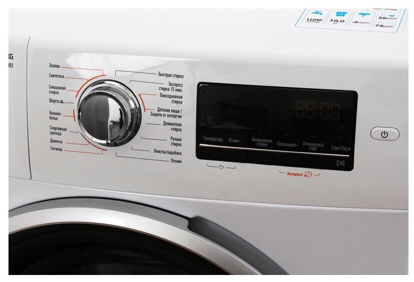 Spin speed selection, washing temperature selection, intelligent washing control, balance control, foam level control, delayed start, wash end signal
