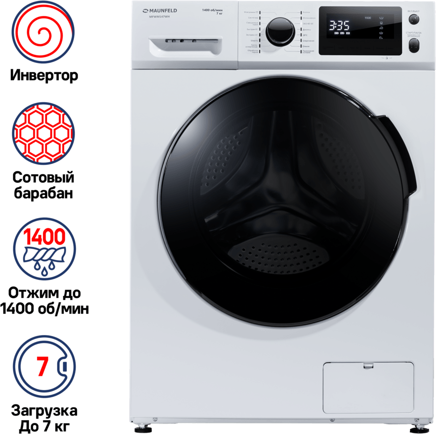 Spin speed selection, washing temperature selection, balance control, foam level control, delayed start, end of wash signal