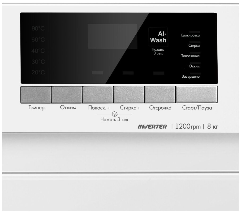 Loading type: front load, maximum load of laundry: 8-8.9 kg, installation: freestanding, depth: 54 cm, width: 60 cm, height: 84 cm, maximum spin speed: 1100-1200 rpm, energy efficiency class : A+++, inve