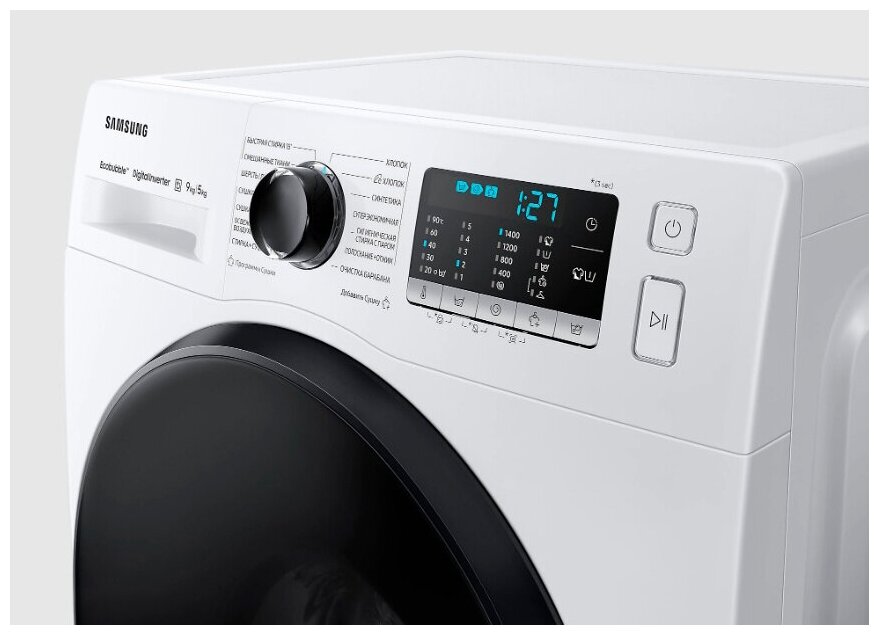 Wash temperature selection, delayed start, bubble wash, end of wash signal, drum clean function +, always clean tray, steam wash, tinted door, air clean function