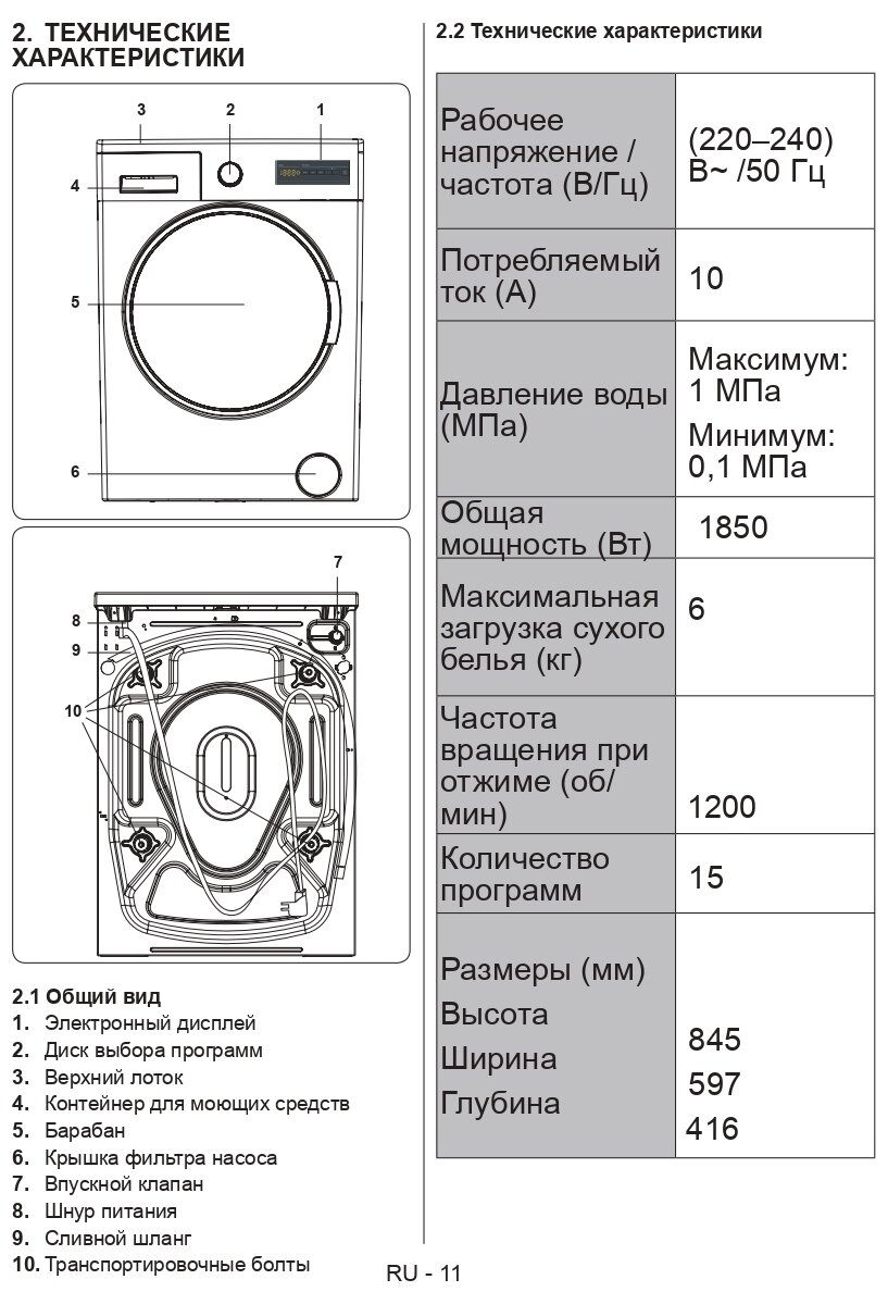 Loading type: front load, maximum load of laundry: 6-6.9 kg, installation: freestanding, depth: 41.60 cm, width: 59.70 cm, height: 84.50 cm, maximum spin speed: 1100-1200 rpm, energy efficiency class : A+++,