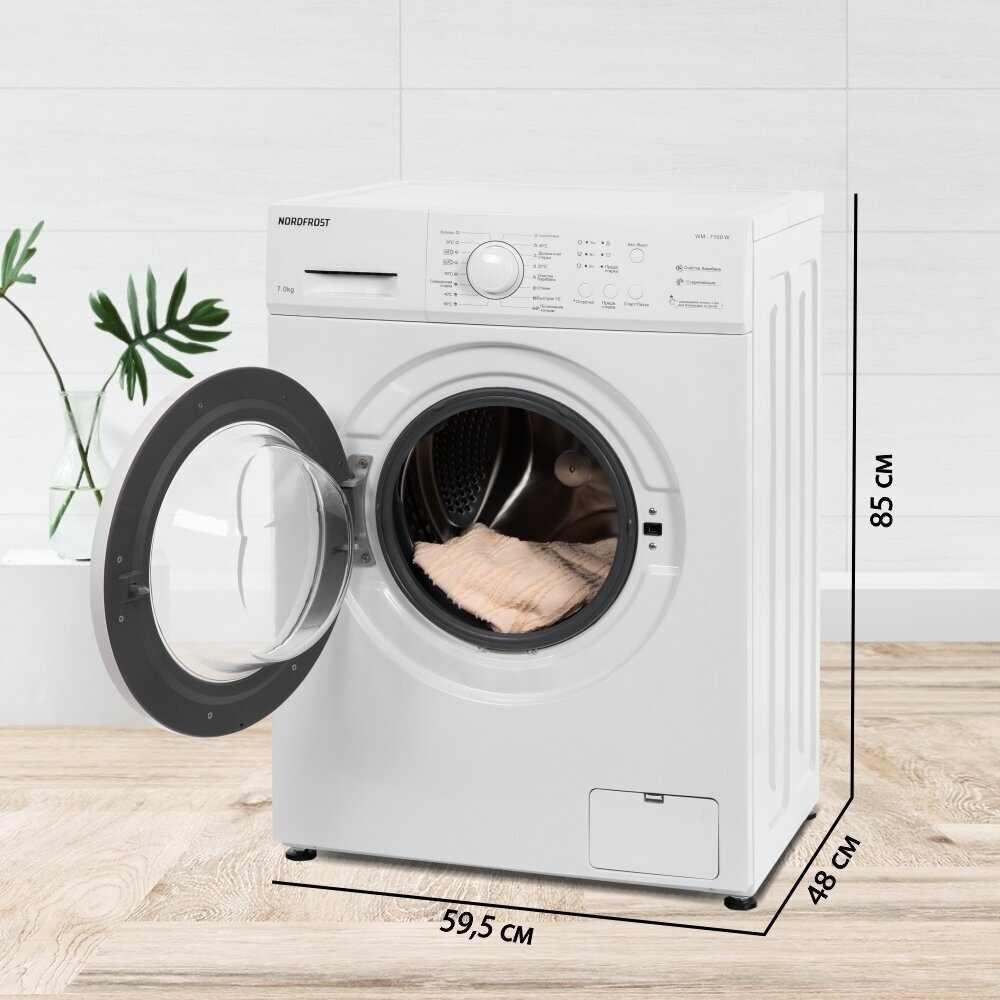 Loading type: front, maximum load of laundry: 7-7.9 kg, installation: freestanding, depth: 48 cm, width: 59.50 cm, height: 85 cm, maximum spin speed: 900-1100 rpm, energy efficiency class : A+++, protection
