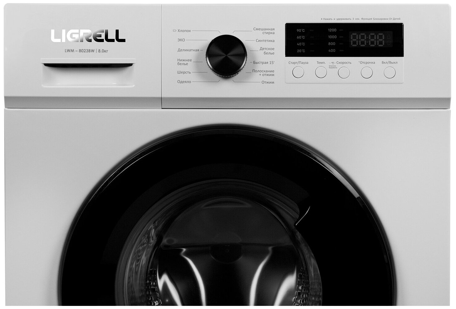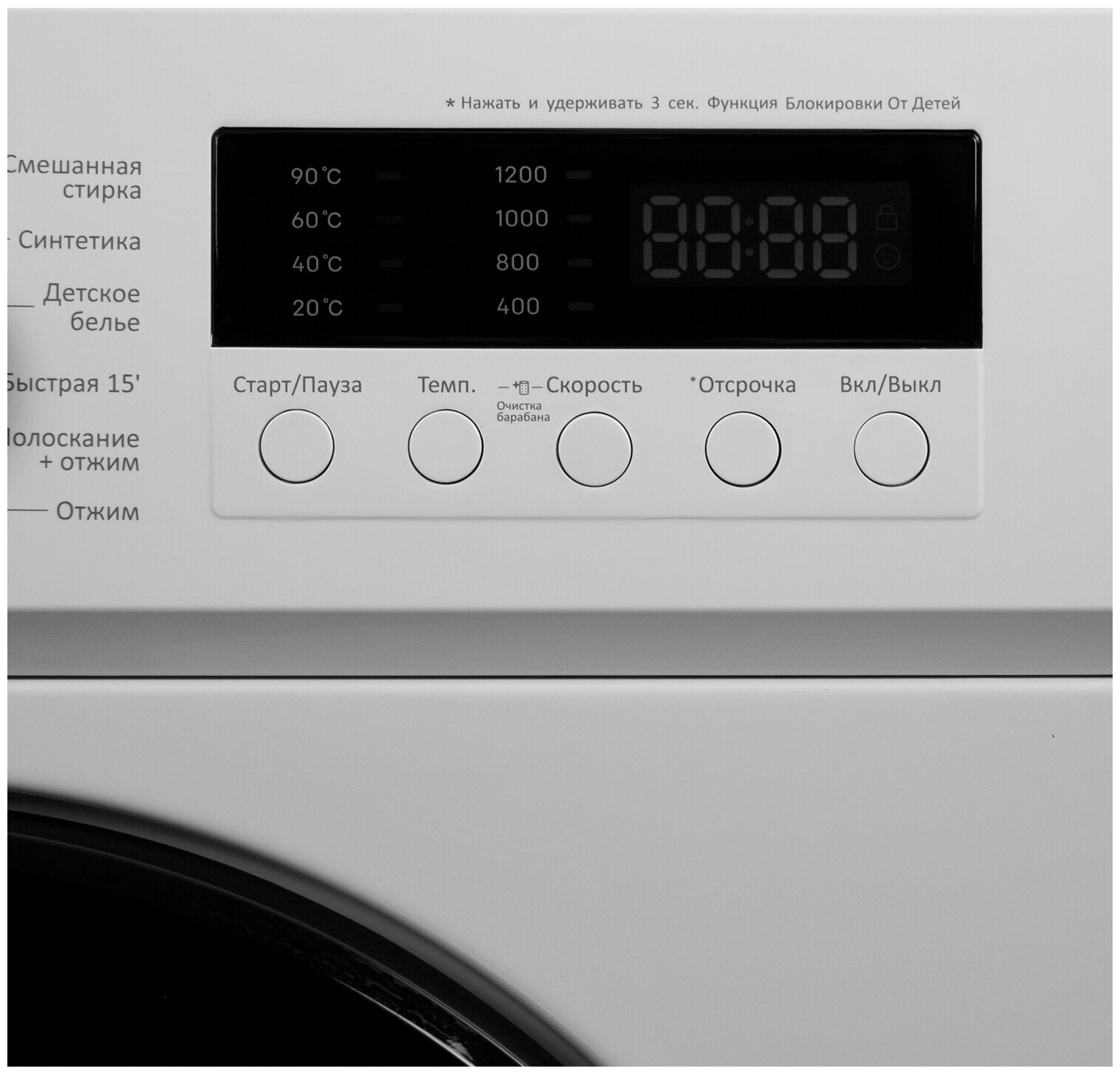 Delayed start, drum cleaning, pause function