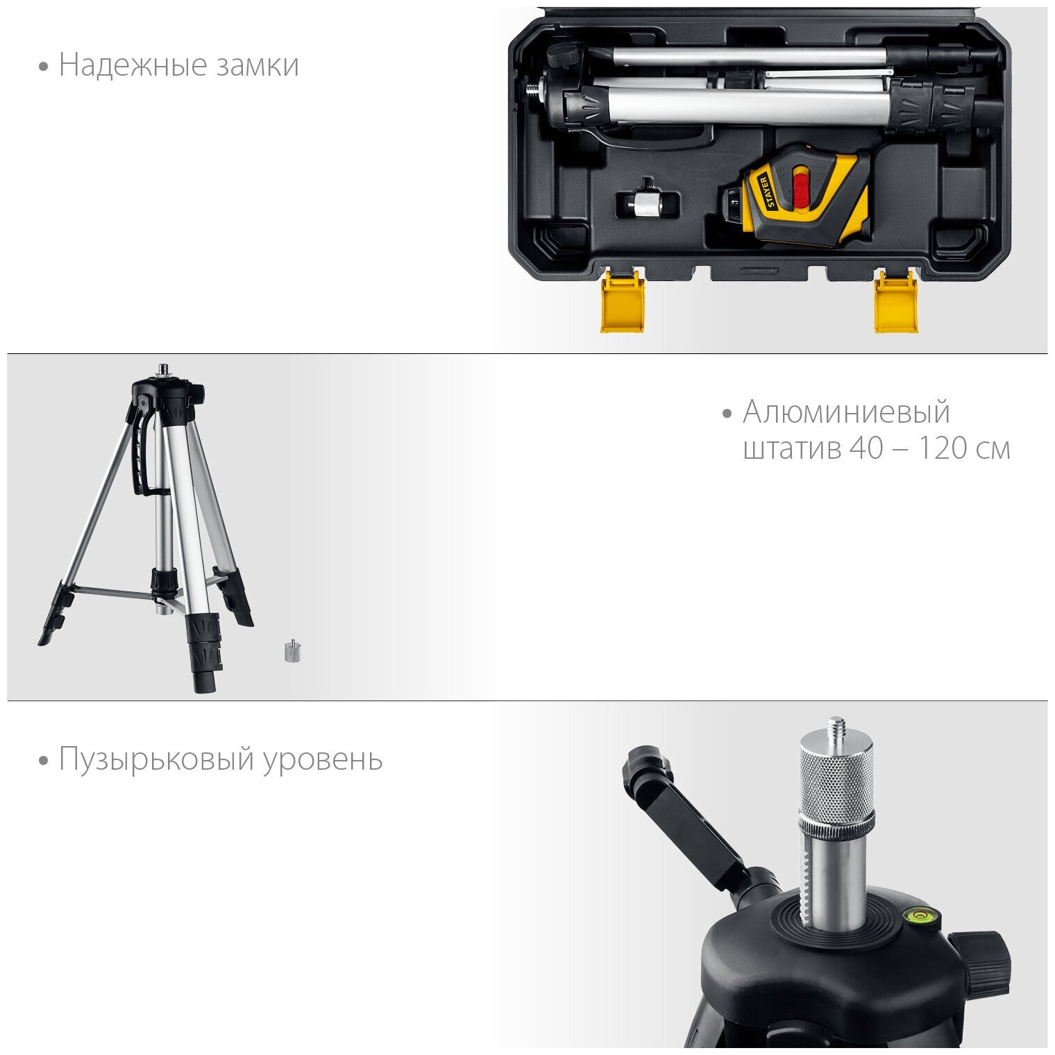 Beam color: red, type: laser, automatic leveling, number of beams: 2 pcs., laser level type: linear, build distance without receiver: 15 m, functions: leveling off, equipment: case/bag