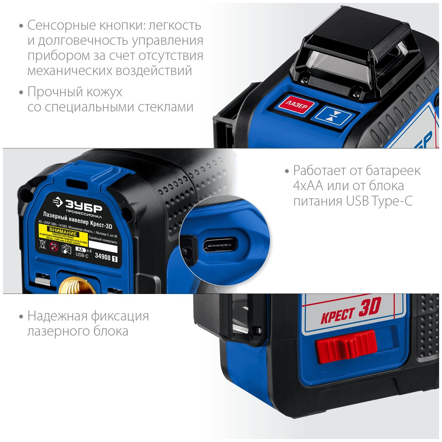 Beam color: red, type: laser, automatic leveling, number of beams: 3 pcs., laser level type: linear, build distance without receiver: 20 m, functions: lower horizon, plumb line, leveling off,