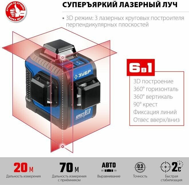 Description: Beam color: red, type: laser, automatic leveling, number of beams: 2 pcs., laser level type: linear, build distance without receiver: 15 m, functions: leveling off, equipment: case/bag