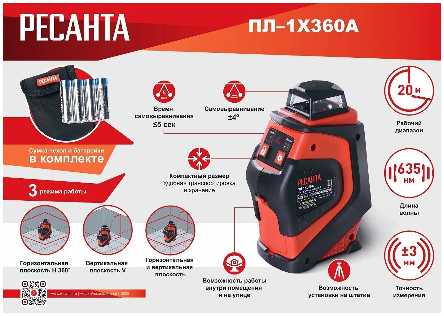Built-in bubble level, sound indication, automatic leveling, tripod mount