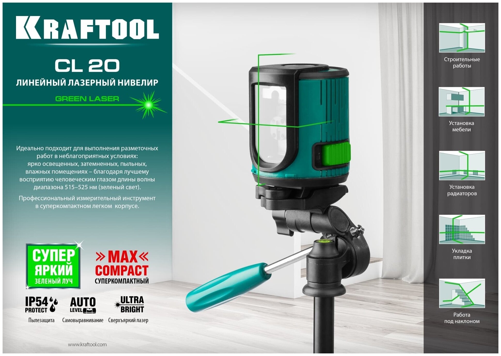 Beam color: red, type: laser, automatic leveling, number of beams: 2 pcs., laser level type: linear, build distance without receiver: 15 m, functions: leveling off, equipment: case/bag