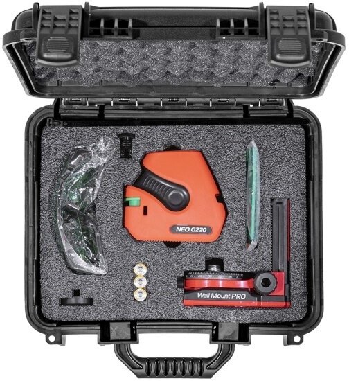 Beam color: green, type: laser, automatic alignment, number of beams: 2 pcs., laser level type: linear, build distance without receiver: 60 m, functions: plumb, features: sound indication, kit
