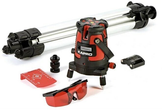 Beam color: red, type: laser, automatic alignment, number of beams: 5 pcs., laser level type: linear, functions: plumb, equipment: goggles, adapter, accuracy: 0.20 mm/m, tripod thread: 1/4" .5/8"
