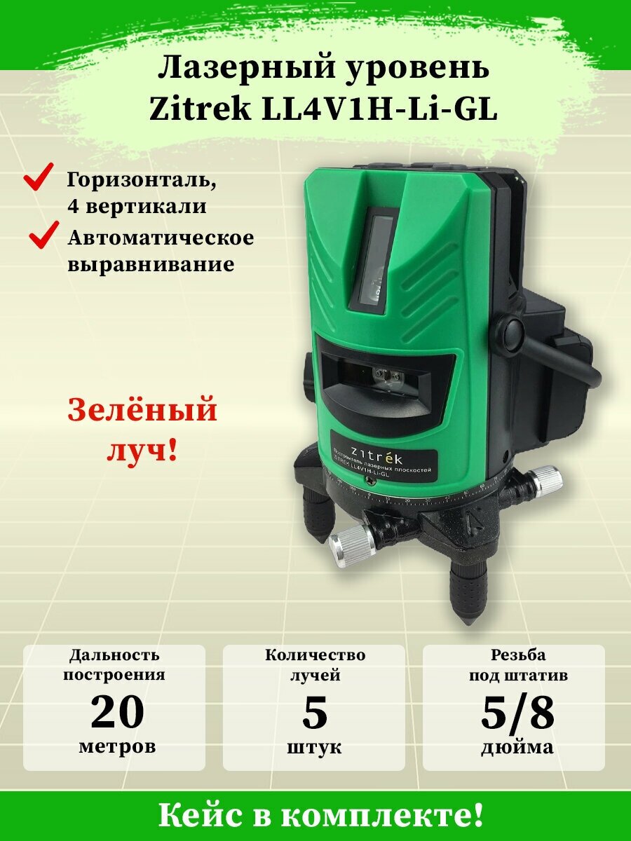 Beam color: green, type: laser, automatic leveling, number of beams: 5 pcs., laser level type: linear, functions: leveling off, rotary base, Indirect measurement, Building a level / p