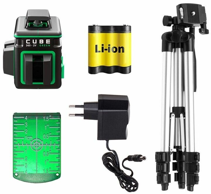 Self-leveling laser level ADA instruments CUBE 360-2V GREEN PROFESSIONAL EDITION A00571 with tripod