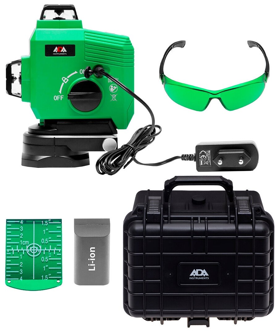 Beam color: green, type: laser, build distance without receiver: 40 m, accuracy: 0.30 mm/m, tripod thread: 1/4", 5/8"