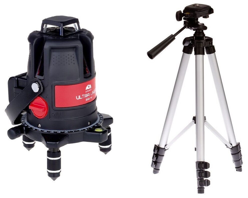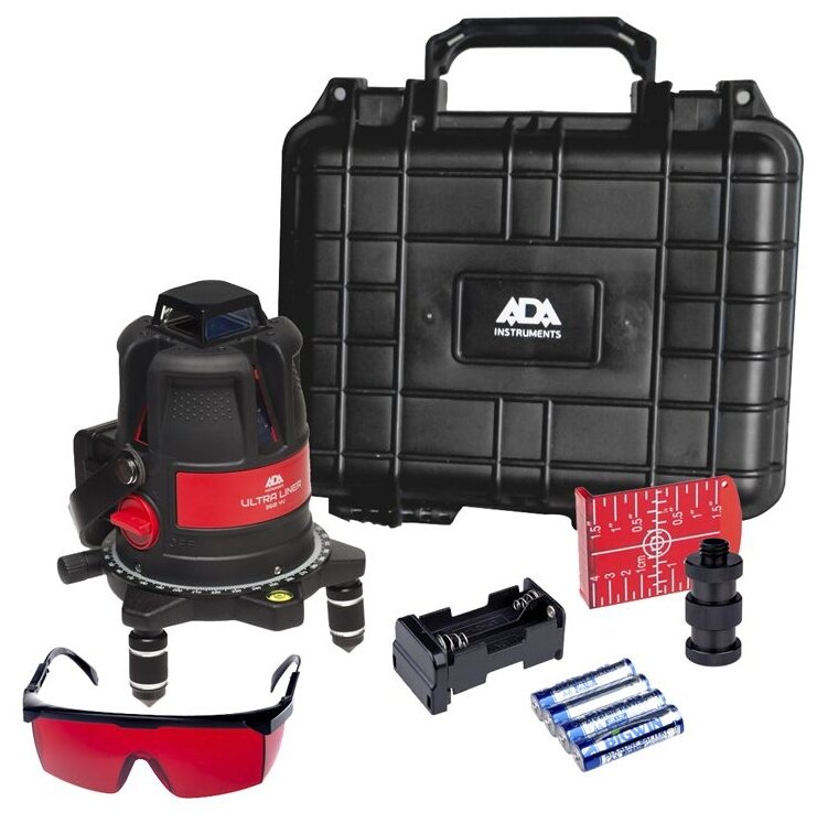 Beam color: red, type: laser, automatic leveling, number of beams: 4 pcs., laser level type: combined, build distance without receiver: 20 m, functions: plumb, level off, turn