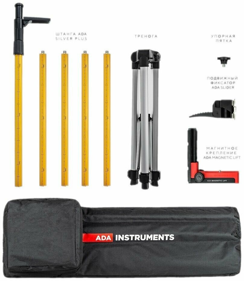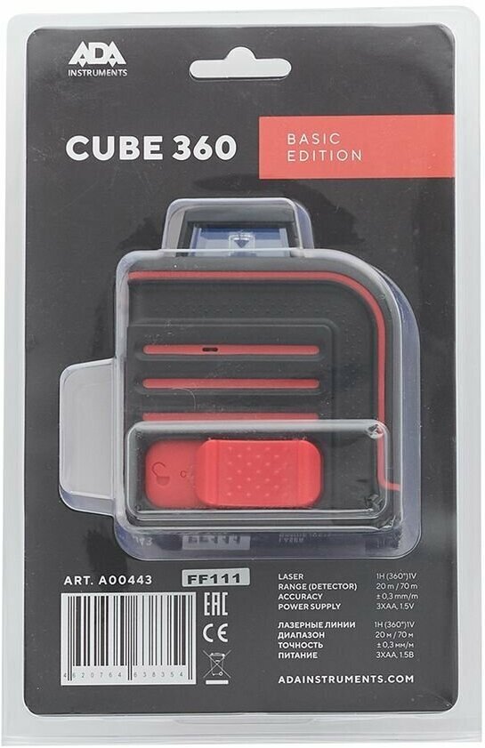 Beam color: red, type: laser, automatic leveling, number of beams: 2 pcs., laser level type: linear, build distance without receiver: 20 m, functions: auto power off, leveling off, Compute