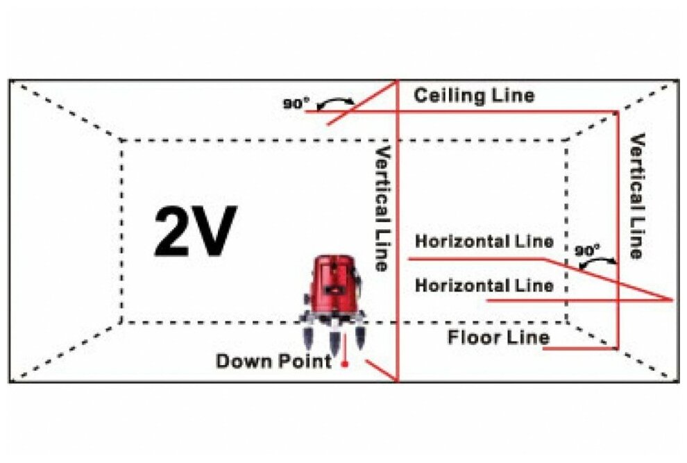Beam color: red, type: laser, automatic leveling, number of beams: 4 pcs., laser level type: combined, build distance without receiver: 10 m, functions: auto power off, plumb line, swivel base