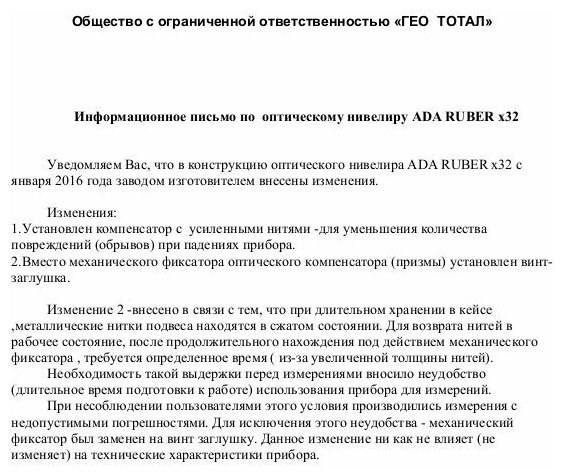 Magnification 32x; rms error 1.5 mm; lens diameter 36 mm; minimum focal length 1 m; operating range of the compensator ±15'; compensator error ±0.3''/1'; compensator setting accuracy ±0.5