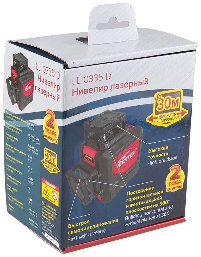 Beam color: red, type: laser, automatic leveling, number of beams: 2 pcs., laser level type: linear, build distance without receiver: 30 m, functions: leveling off, equipment: battery