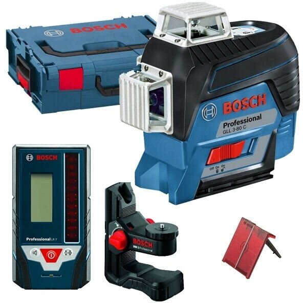 The set also includes a bag-case and a holder for the laser receiver LR 6/7 1 608 M00 C1L; operation from 4 x AA batteries possible via adapter 1 608 M00 C1B sold separately