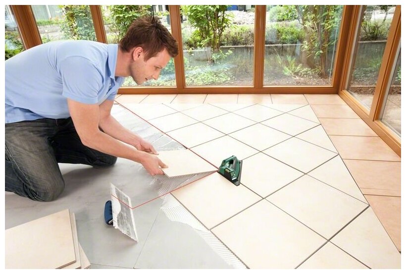 For laying tiles on the floor or wall, wall fixing 1 609 203 Z22, two beams at 90 degrees