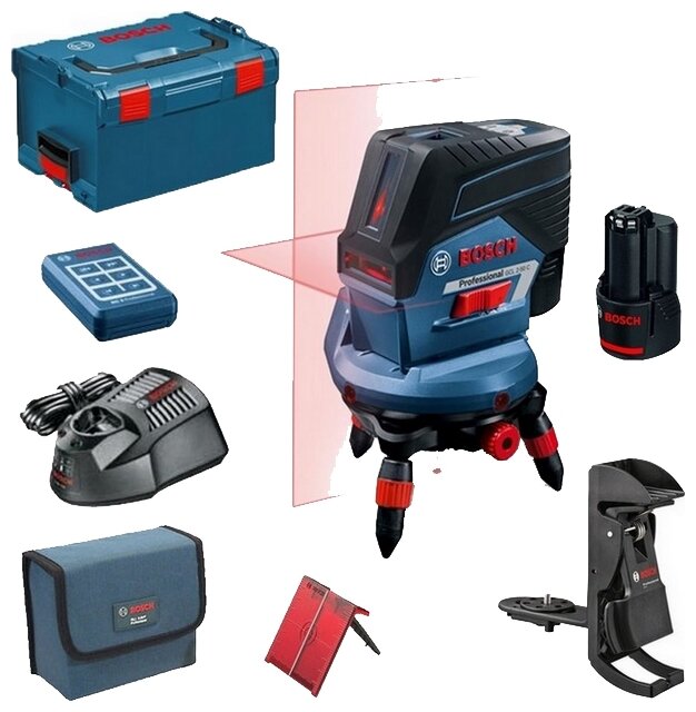 Beam color: red, type: laser, automatic leveling, number of beams: 4 pcs., type of laser level: combined, build distance without receiver: 20 m, functions: auto-off, plumb, off leveling