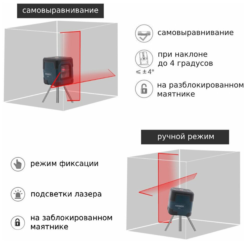Beam color: red, type: laser, number of beams: 5 pcs., functions: auto power off, tripod thread: 1/4"