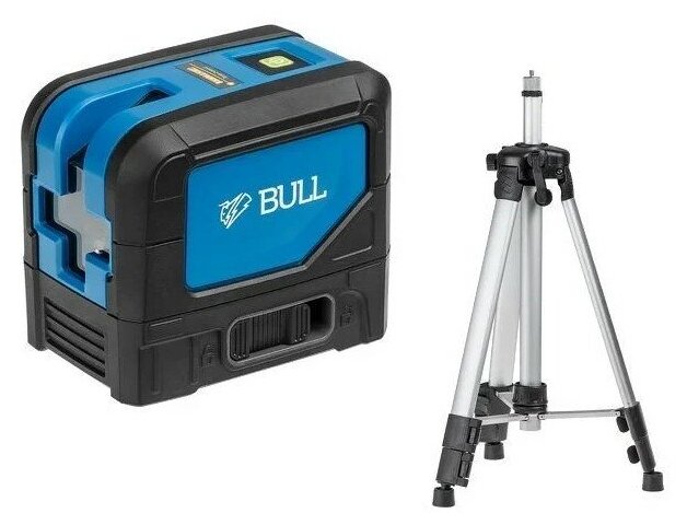 Level laser linear BULL LL 3401 with battery and tripod in box. projection: 3 planes 360°, up to 80 m, +/- 0.30 mm/m, 1/4 thread Suitable for