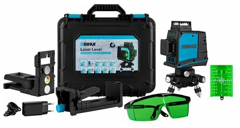 Batteries accumulator, charger, case/bag, bracket, target, glasses, tripod