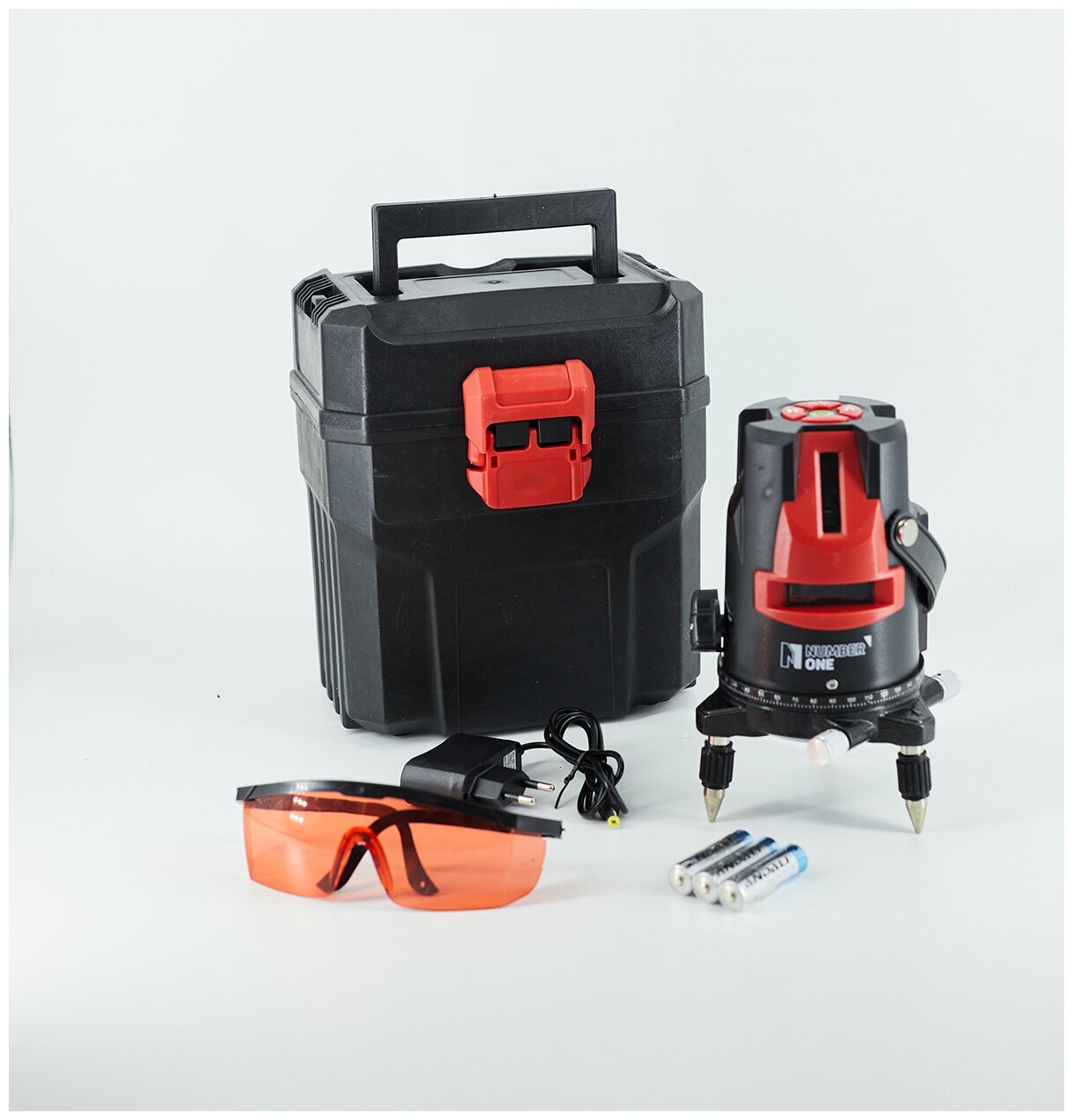 Beam color: red, type: laser, automatic alignment, number of beams: 5 pcs., build distance without receiver: 20 m, equipment: batteries accumulator, charger, manual, case/bag, goggles, then