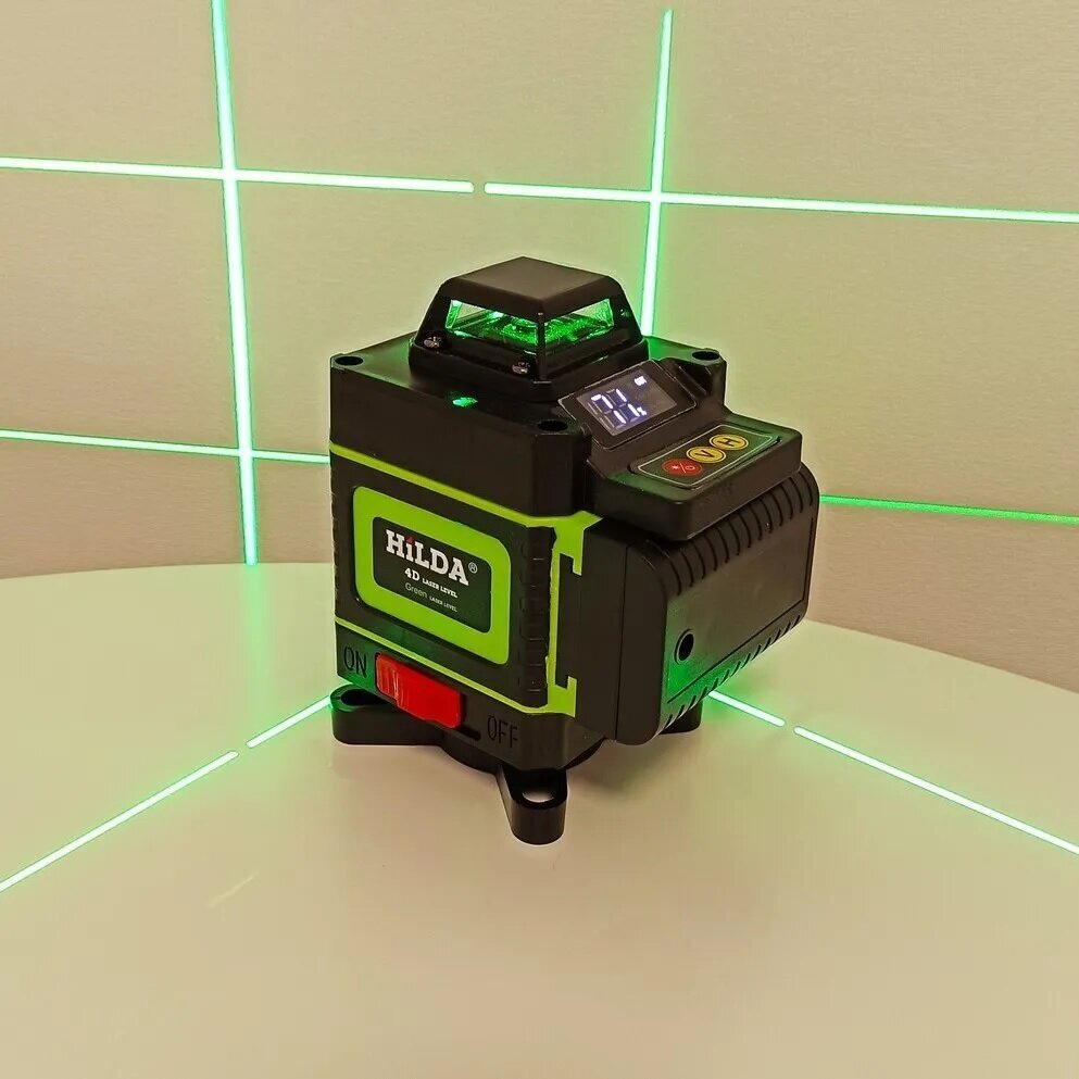 Description: Beam color: green, type: laser, automatic leveling, number of beams: 16 pcs., laser level type: linear, build distance without receiver: 30 m, functions: lower horizon, plumb line, leveling off
